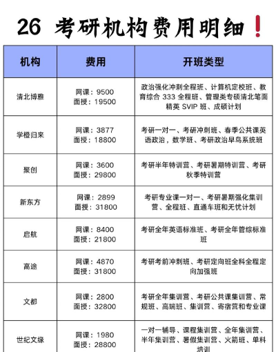 总结 :主流机构普通班和进阶班费用集中在1880-4980元之间,建议根据自身基础和需求选择,并关注课程内容与课时安排。