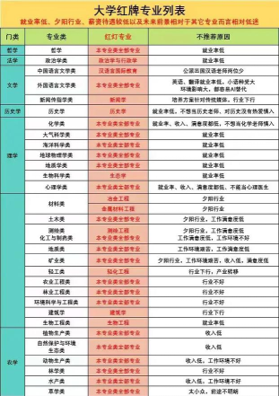 红黄牌专业是教育部门根据就业市场表现划分的类别,主要用于指导高校专业设置和考生填报志愿。以下是具体分析: